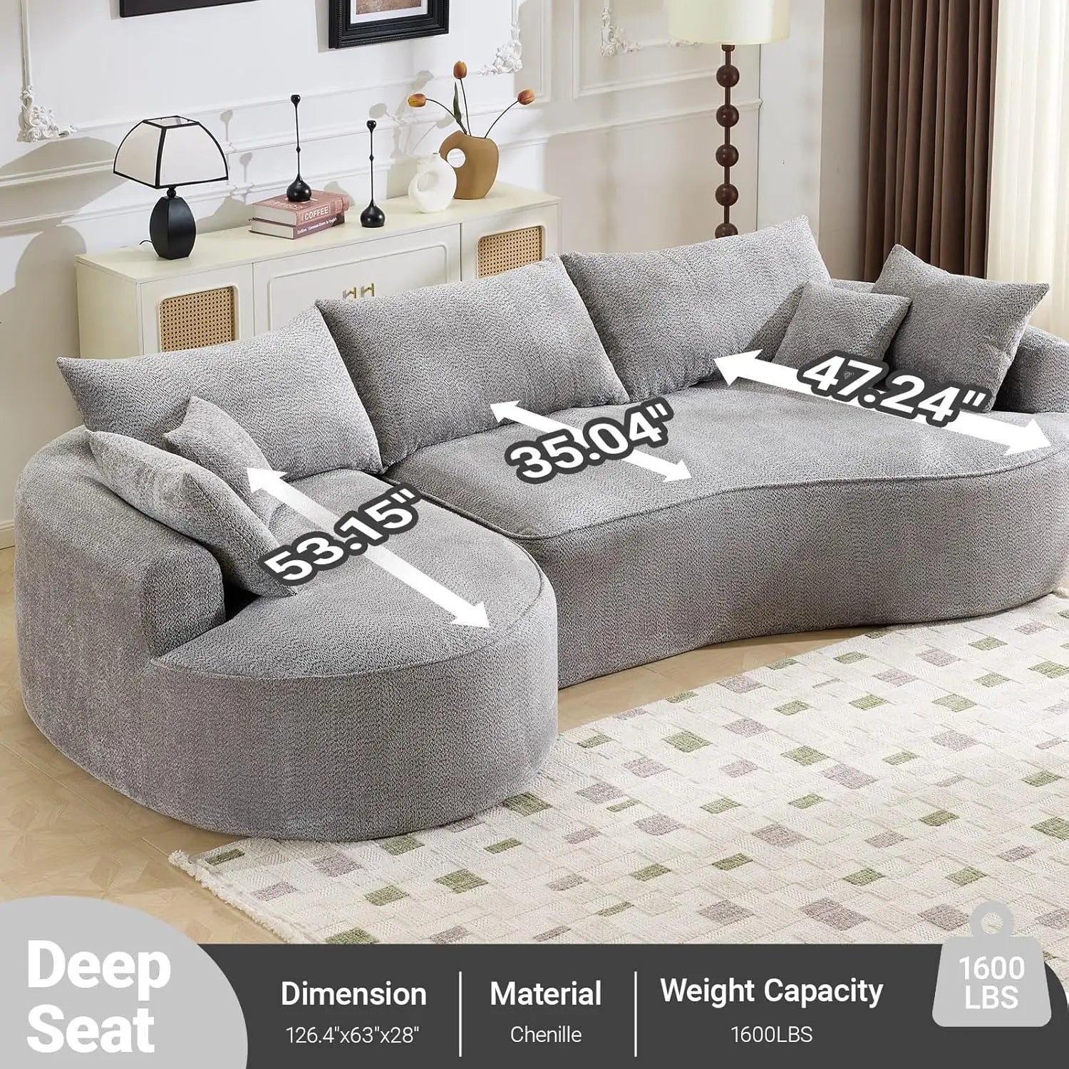 Oversized L Shaped Sectional Sofa With Curved Seat And Pillows