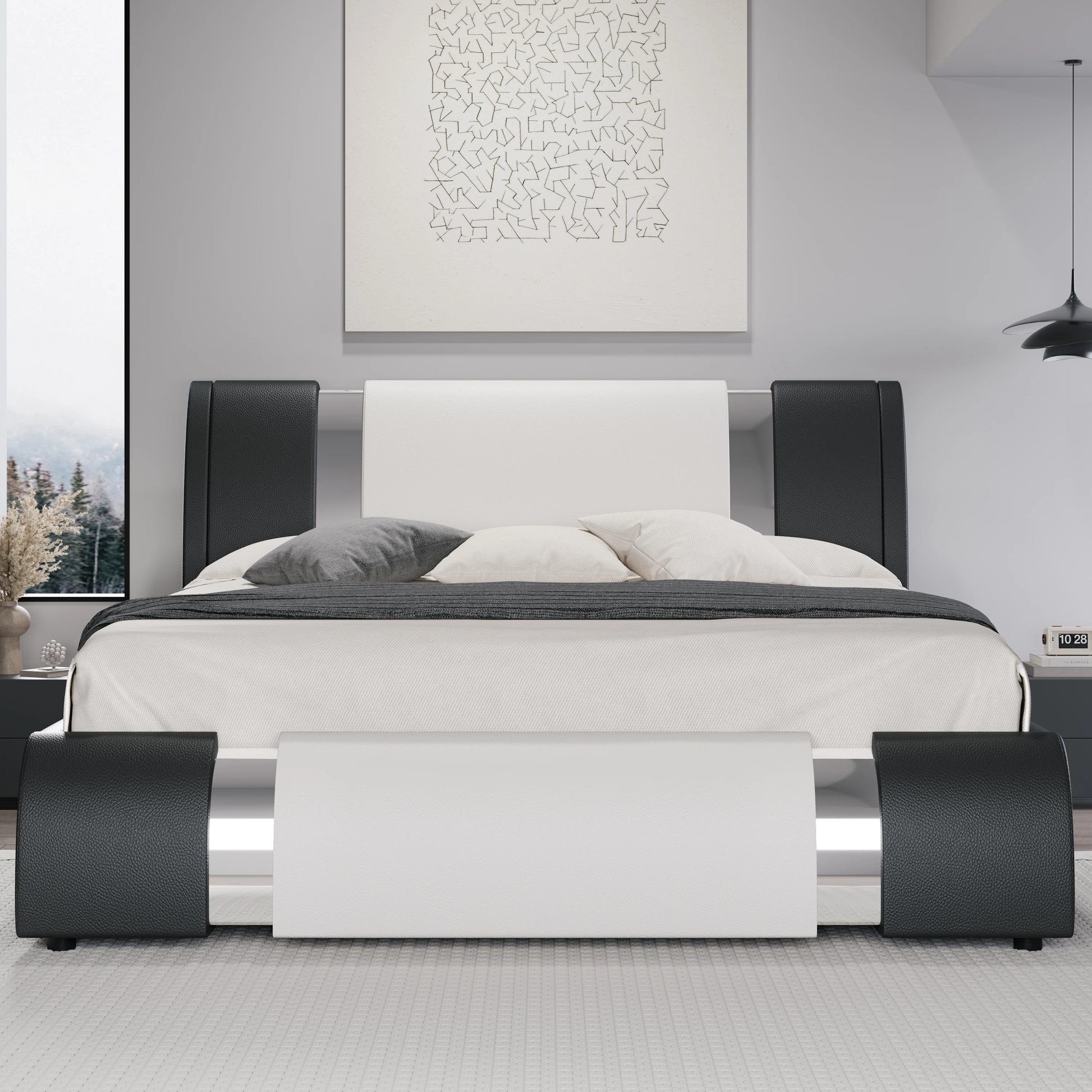 HOOMIC Modern Faux Leather Bed Frame With Iron Decor